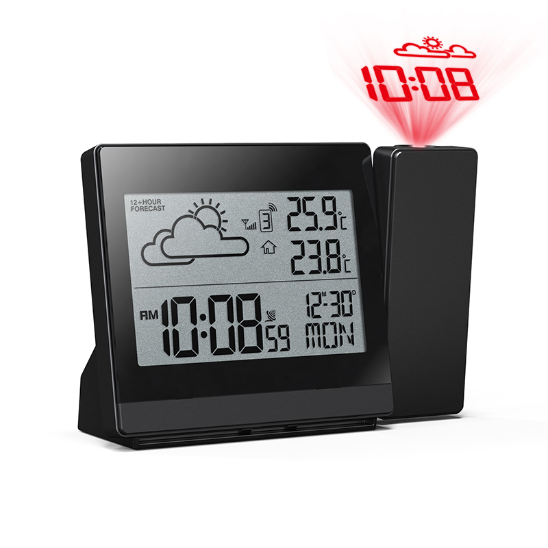 The projection feature allows you to display time and weather on a wall or ceiling for easy viewing during the night.